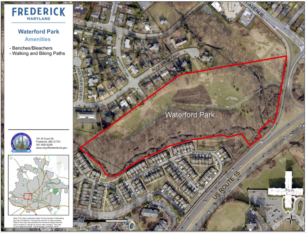 Two Parks in One: Includes Rock Creek Park (located generally between Baughman’s Lane and the first bridge from Baughman’s Lane) and Waterford Park (located generally from that first bridge from Baughman’s Lane to Route 15).
